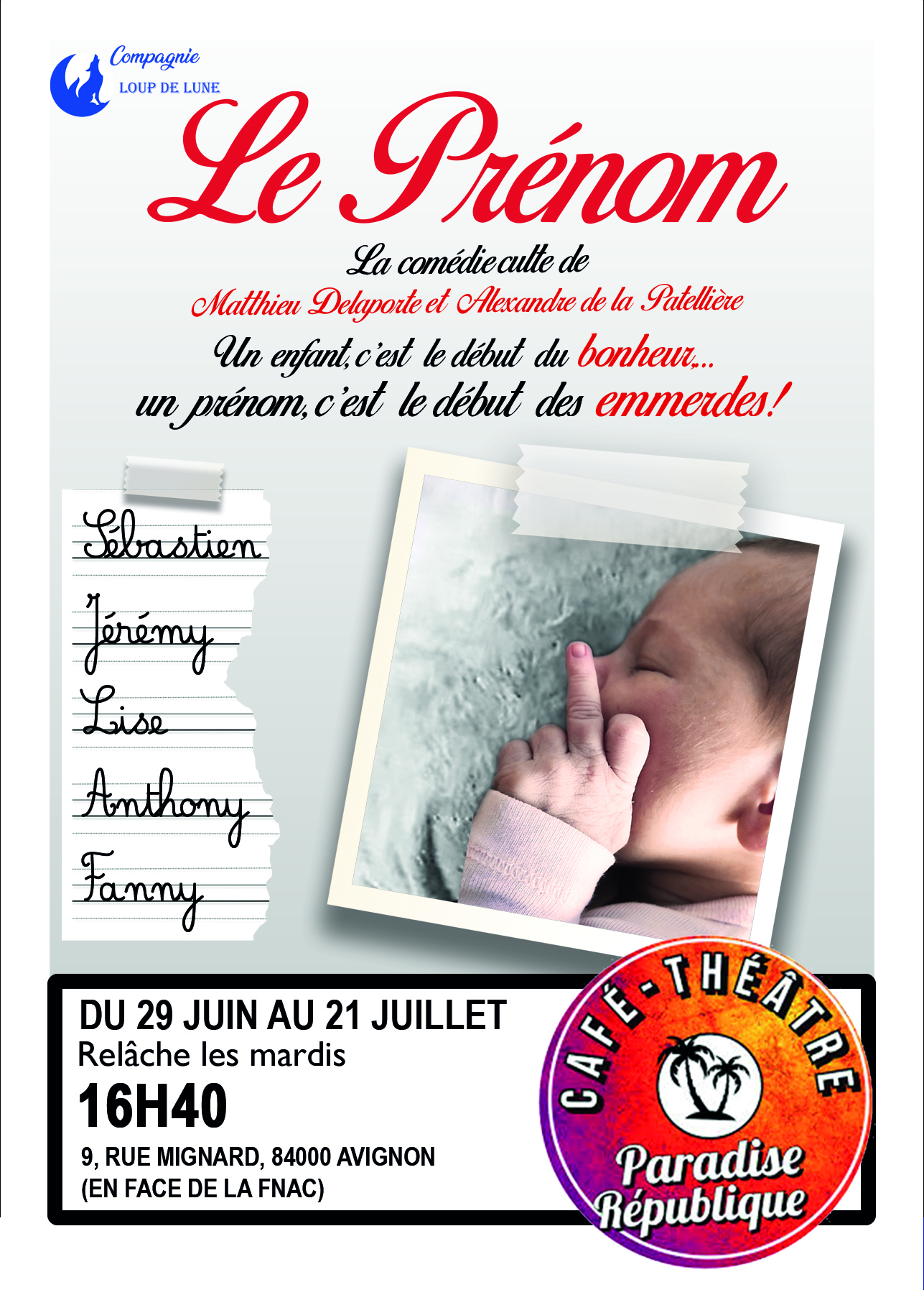 Le Prénom est un petit bijou, une satire sociale jubilatoire où tout le monde se reconnaîtra dans ses travers, ses petites lâchetés, ses frustrations sous le vernis des apparences…